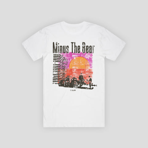 A t-shirt uniquely designed and inspired by the track This Ain't a Surfin' Movie featured on Minus The Bear's album Menos el Oso