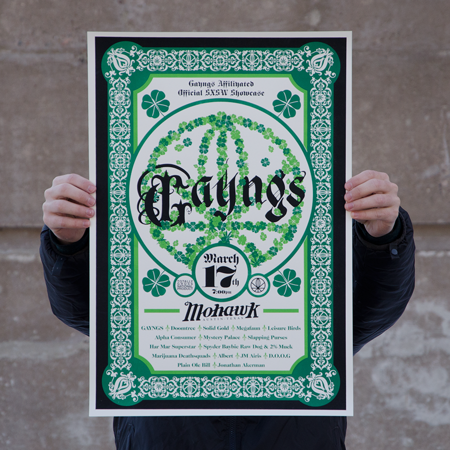 Designed exclusively for the 2011 SXSW Showcase at the Mohawk, on March 17th in Austin, TX. Artist featured include: Doomtree, Megafaun, Har Mar Superstar, Marijuana Deathsquads and more. Sized perfectly at 16.5" x 24".