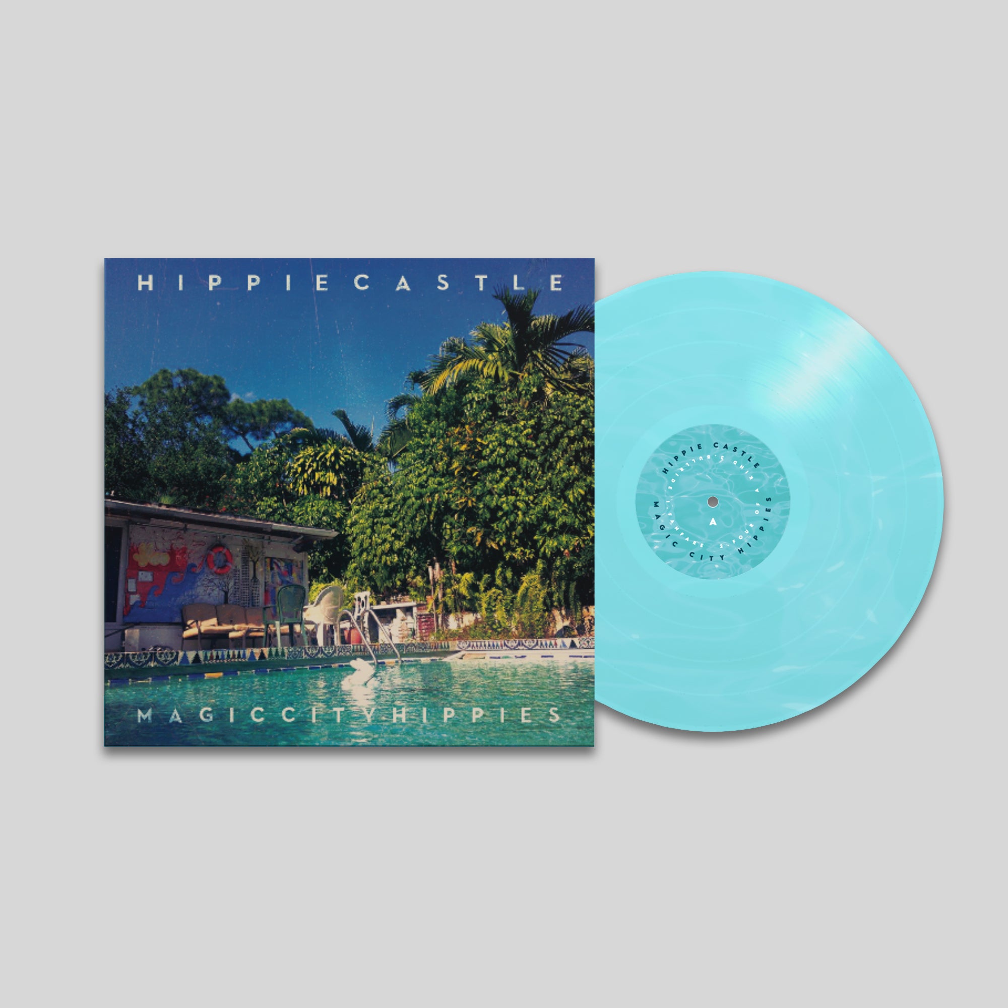 Our debut EP Hippie Castle pressed on transparent poolwater blue heavyweight vinyl.